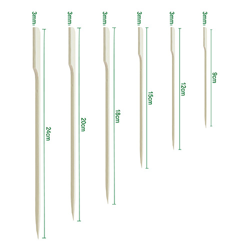 - MULTIPLE SIZES & SHAPES: Available in round sticks (2.5–5.0mm thickness, 120–250mm length), square skewers (3–6mm width, 180–400mm length), and machine-compatible sticks (4.0mm×125mm), providing versatile options for grilling, serving, and food presentation. Custom sizes are supported to meet specialized needs.